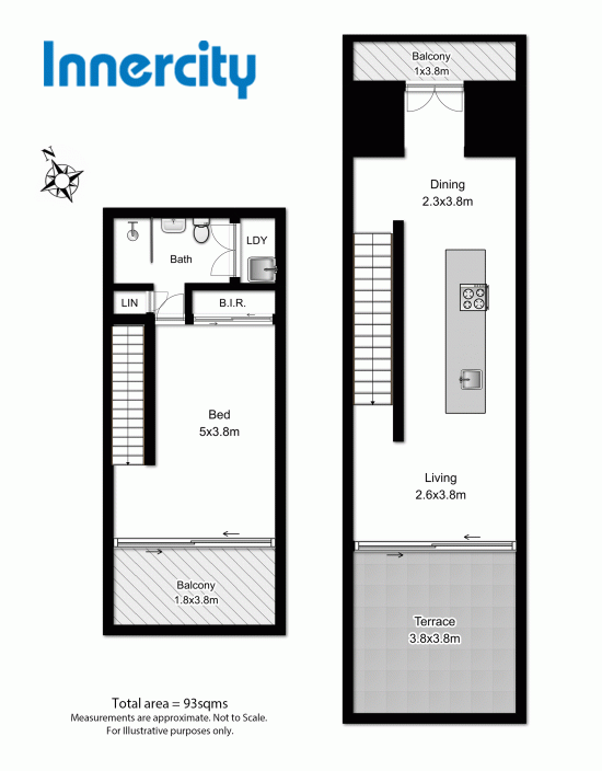 Upstairs, the large carpeted bedroom includes a modern ensuite, built-in robes and full-width balcony. The sleek kitchen features a stainless steel island benchtop and quality modern appliances.